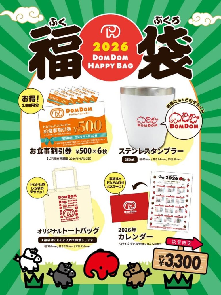 ドムドムハンバーガーの2026年福袋(新春福袋)が公式サイトで発表されました!