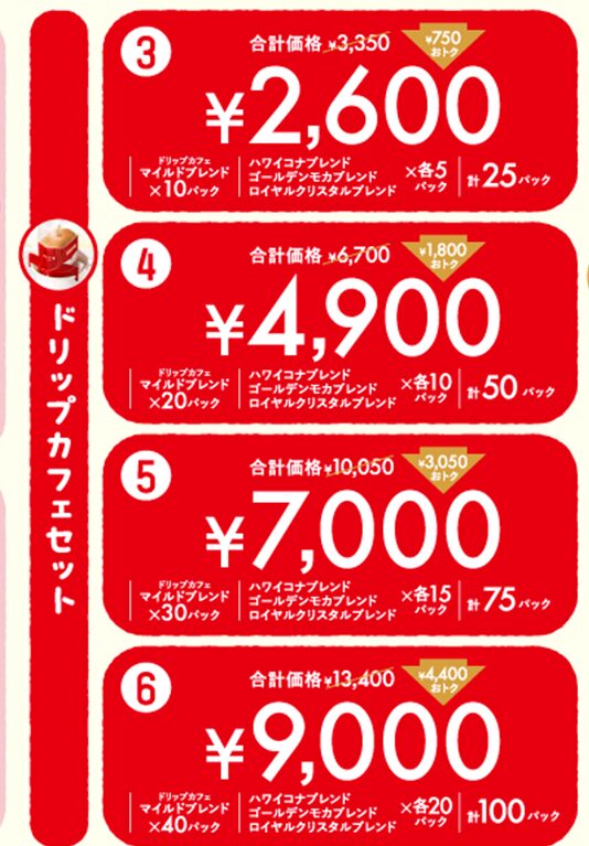 | 【商品名】 | ドリップカフェセット 2,600円 |