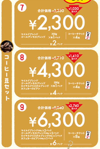 | 【商品名】 | コーヒー豆セット 6,300円 |