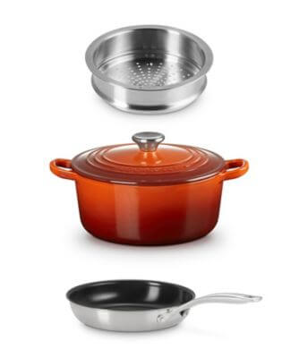 | 【内容】 | ・両手鍋 22cm×1 ・フライパン×1 ・スチーマー×1 |