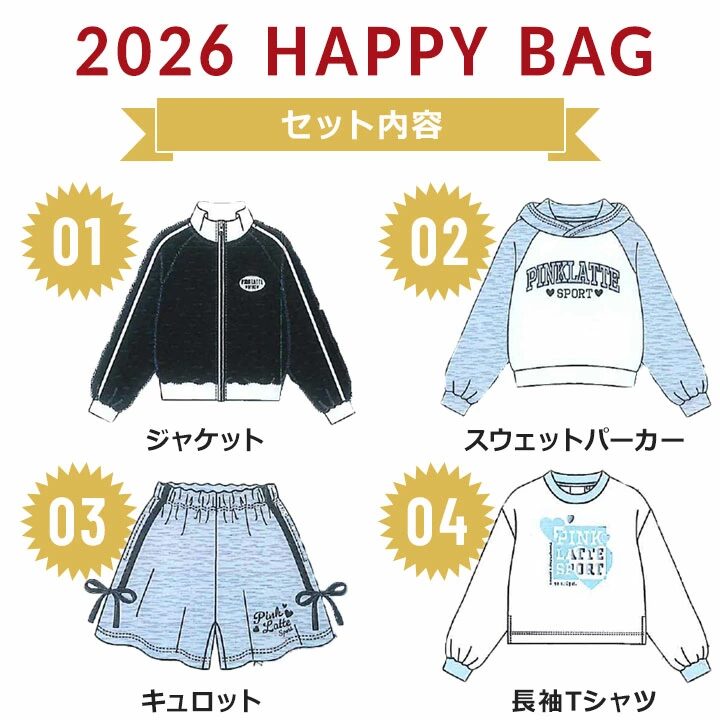 | 【内容】 | ・ジャケット ・スウェットパーカー ・長袖Tシャツ ・キュロット |