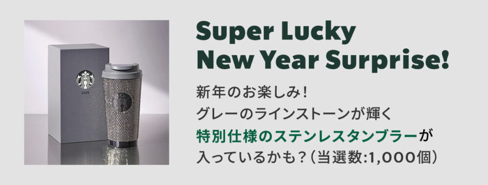 また、今年は「Super Lucky New Year Surprise!」としてグレーのラインストーンで装飾された特別仕様のステンレスタンブラーが1000個限定で用意されています!