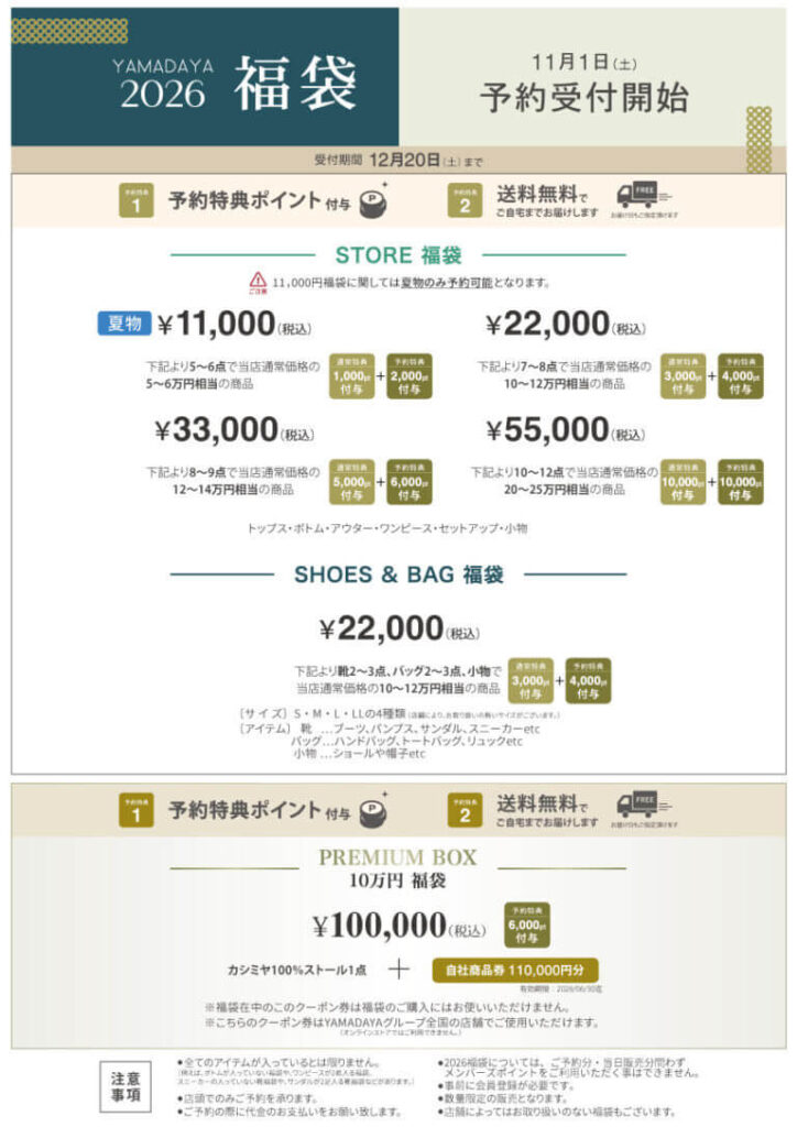ヤマダヤ福袋2026の予約は店頭受付のみとなります。